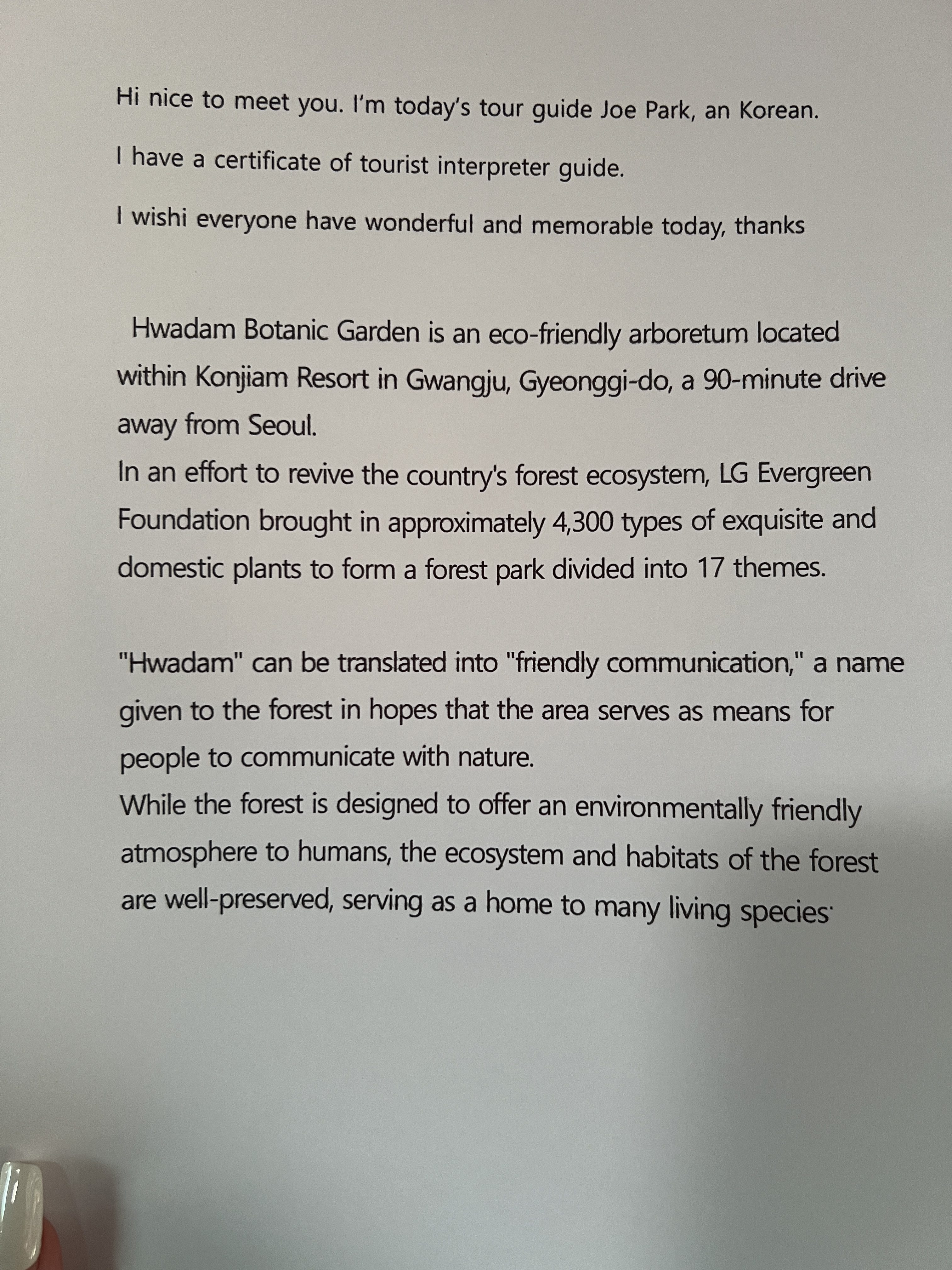 There are a lot of packages being offered but I specifically chose the one that included the Botanical Garden – aka. the main gem of Hwadamsup!