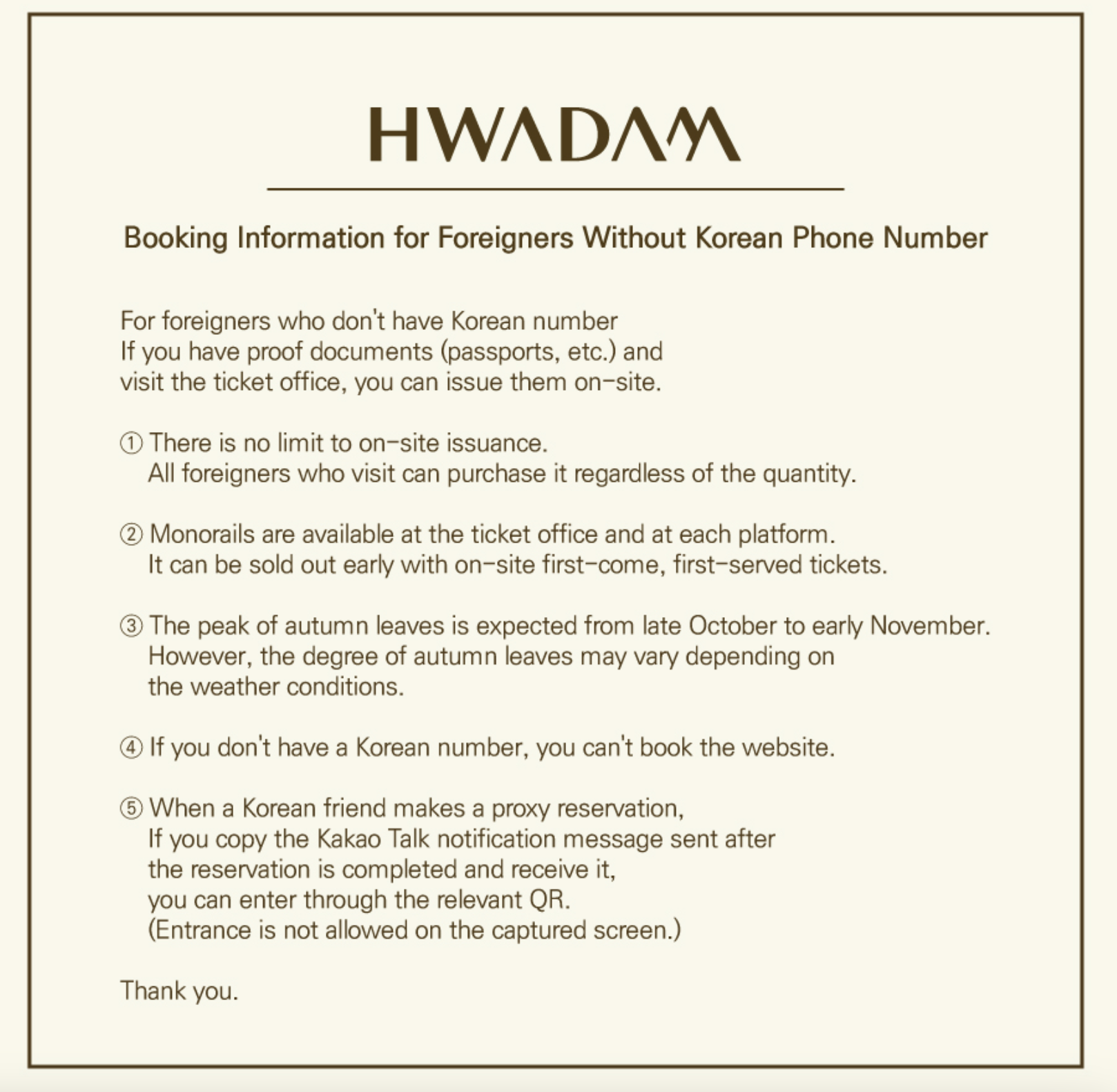 I think the best time to visit Hwadamsup is during the first week to maybe the second week of November. For reference, I booked this tour on the 25th of October. I think the place was still not as orange or as yellow as I expected.