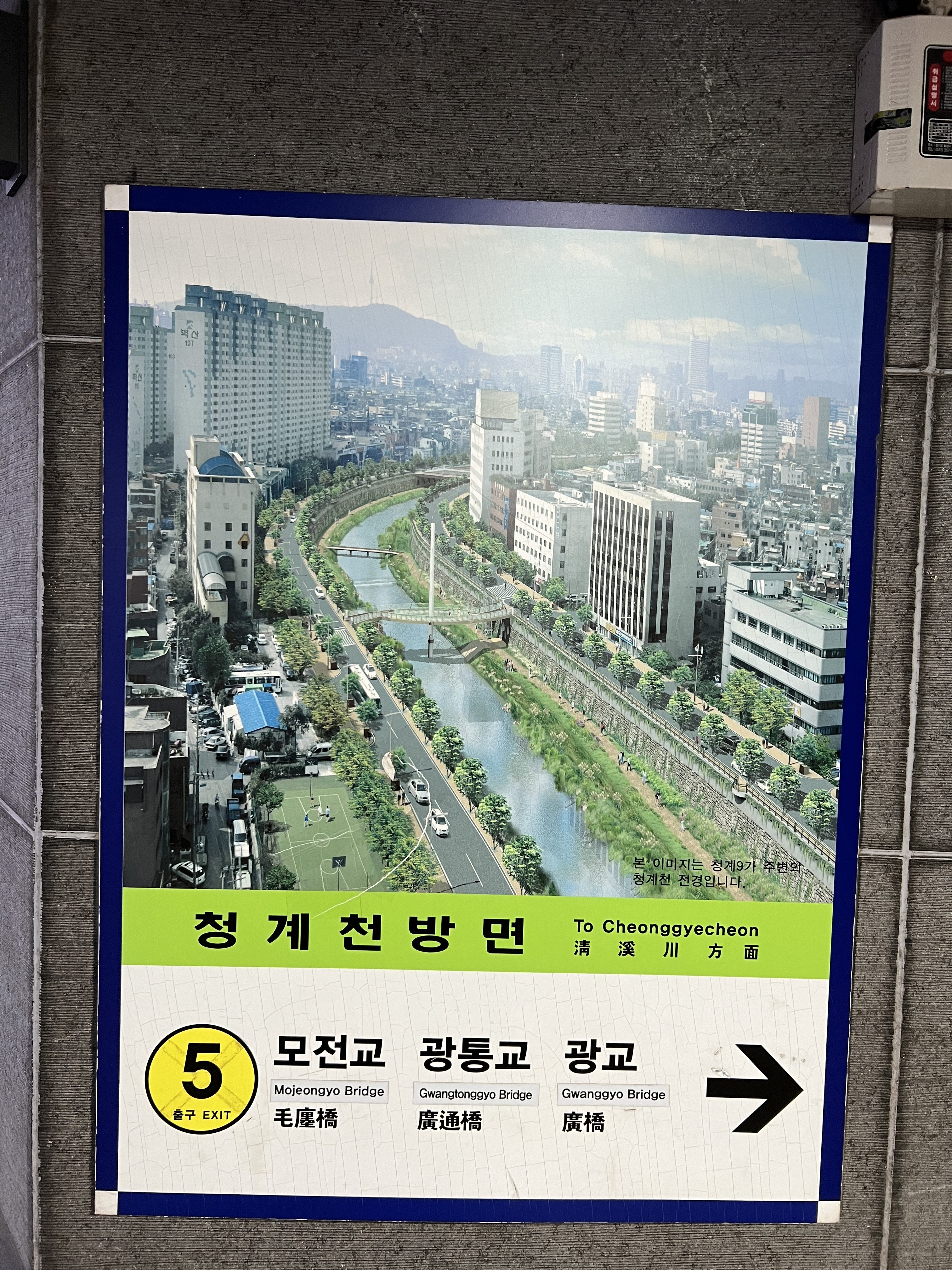 I’ve been wanting to see Cheonggyecheon stream (청계천) for the longest time but it’s usually out of the way. Luckily the stream is near Four Seasons Hotel, the subway stop is the same but the exit is different!