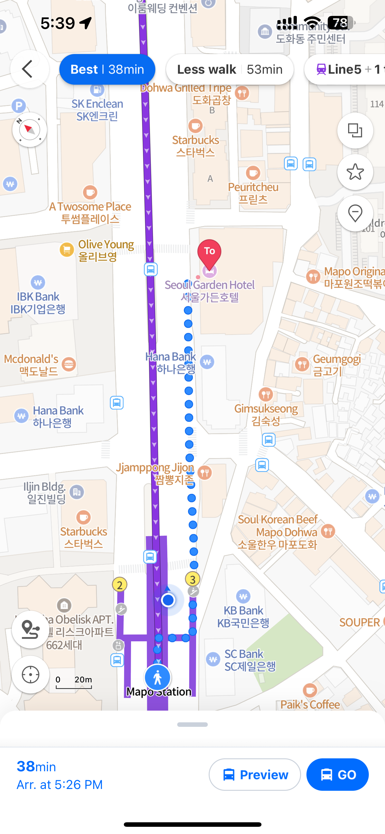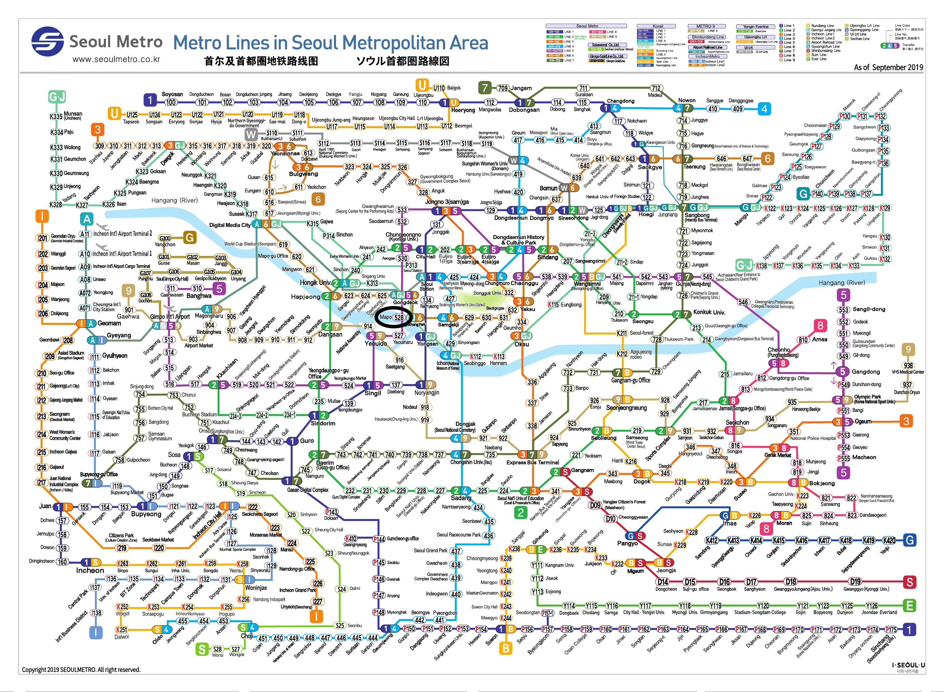1. Get down at Mapo Station (line 5)