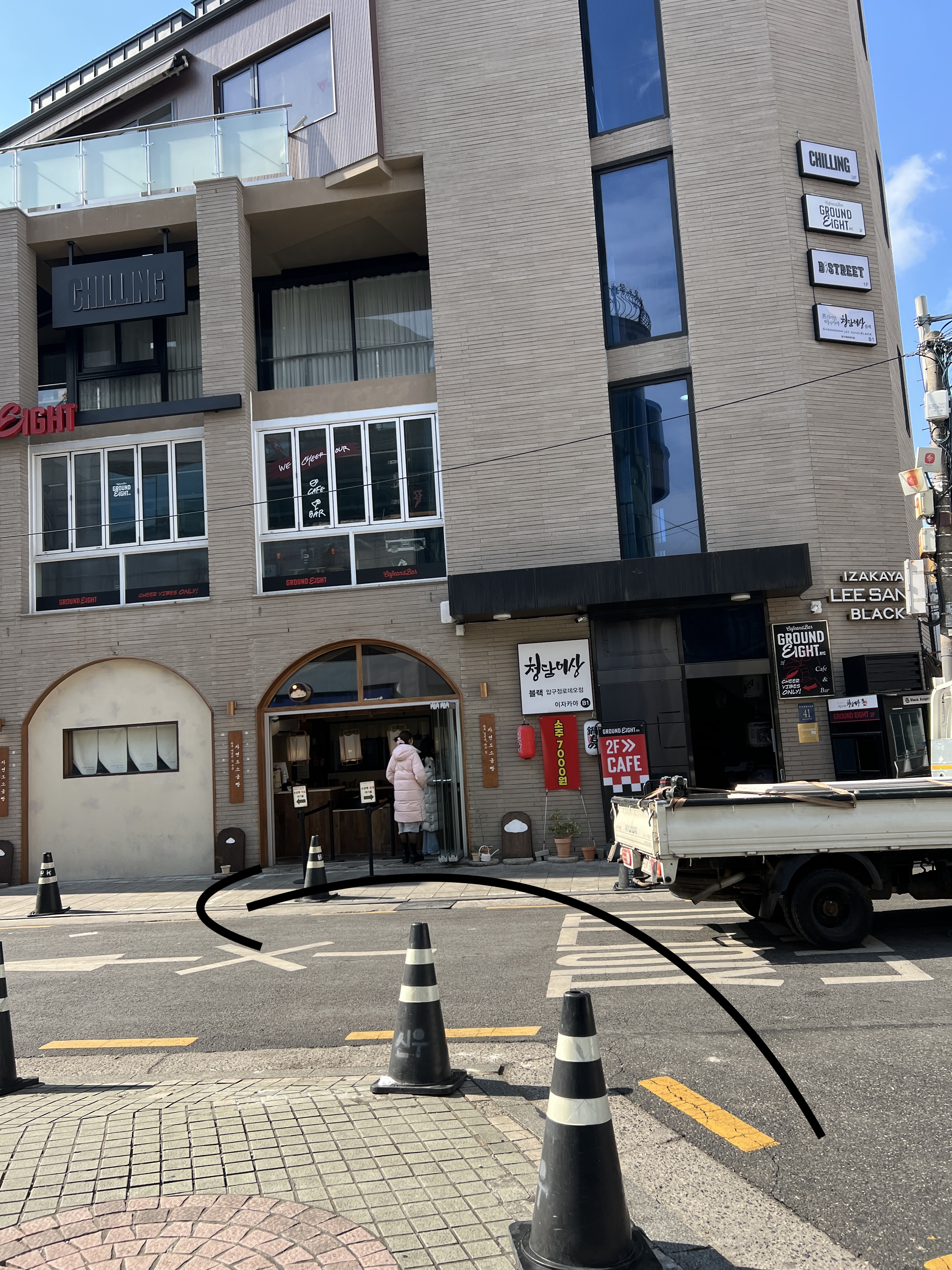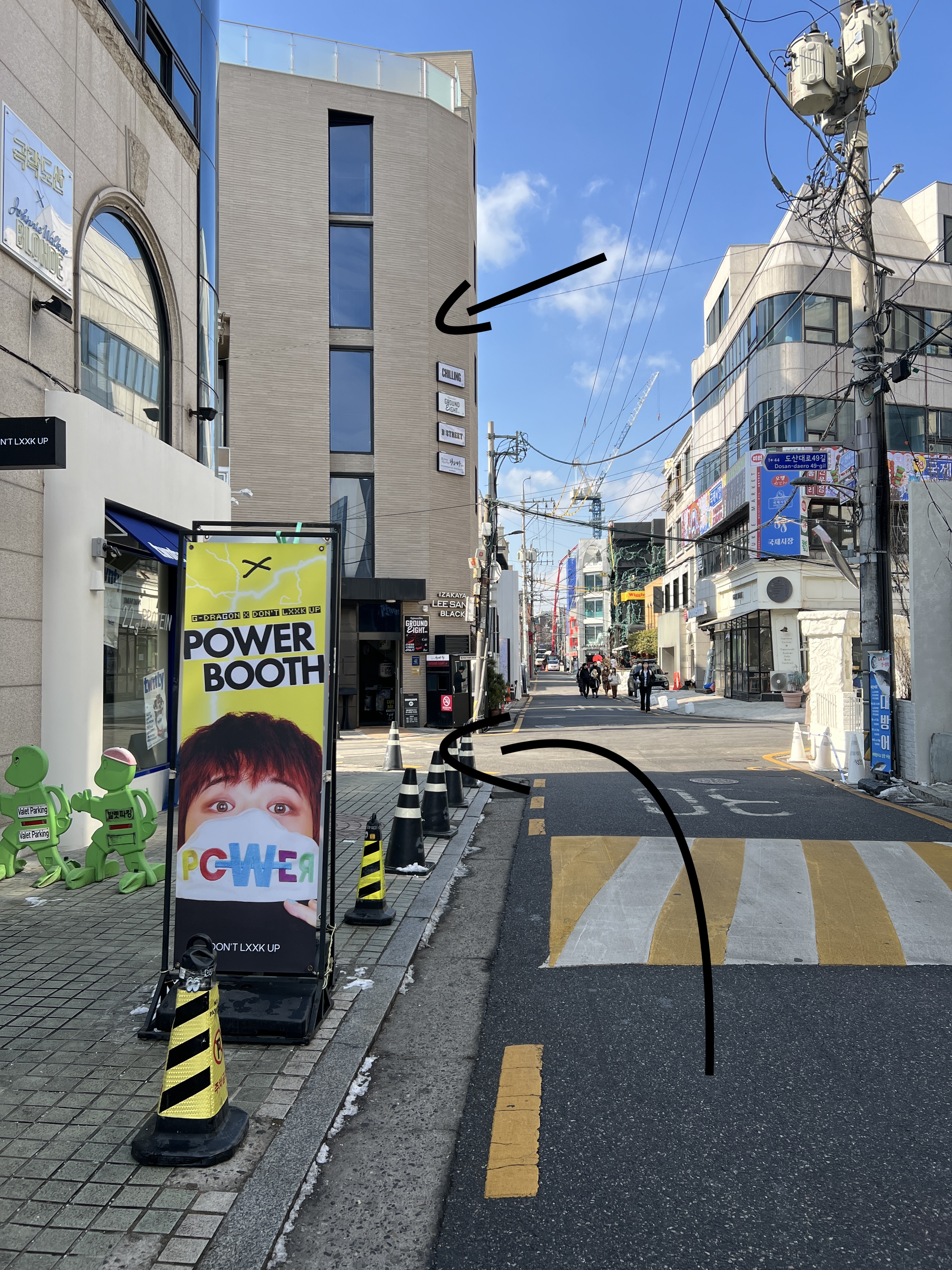 there’s a street on your right before Paris Baguette and you’ll turn to that street