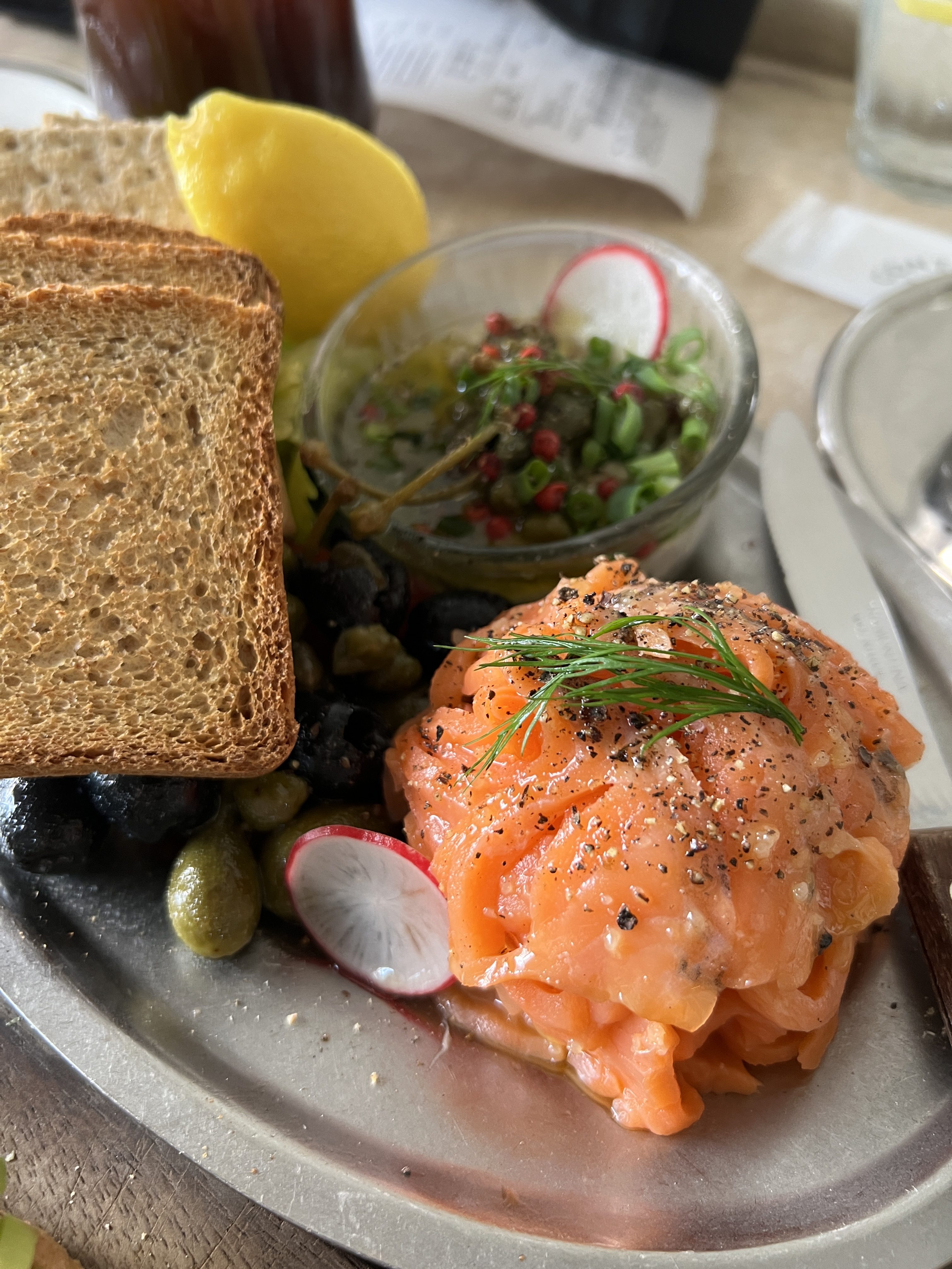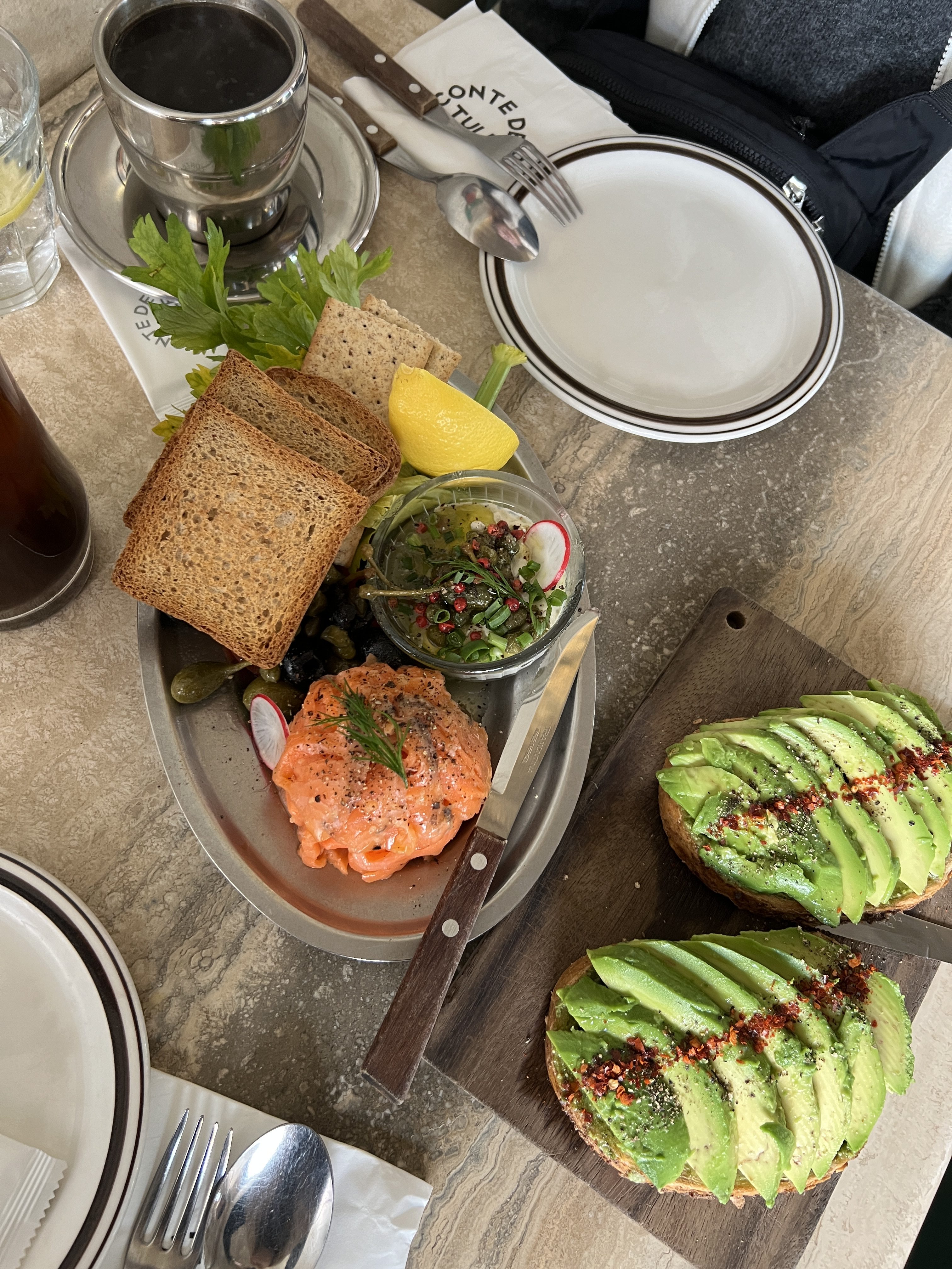 My mom and I got the Avocado Toast, the Salmon and Dipping Plate, and coffee.