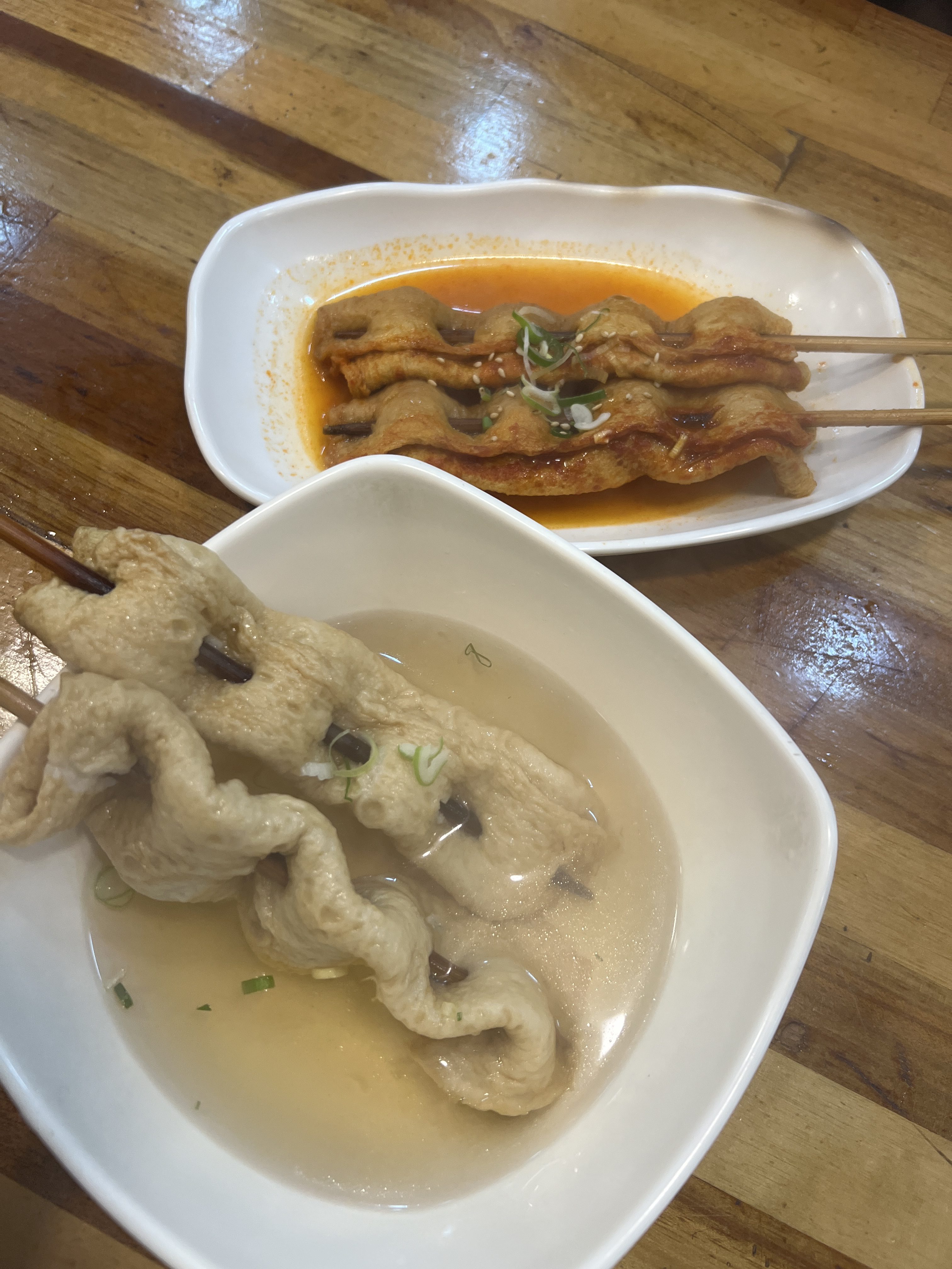 오지개 just requires 2 sticks per person to be able to sit inside so my mom and I got 2 sticks each, but we bought more after, to be able to get in. Mom got the spicy fish cake while I got the regular one. The spicy version didn’t have a soup.