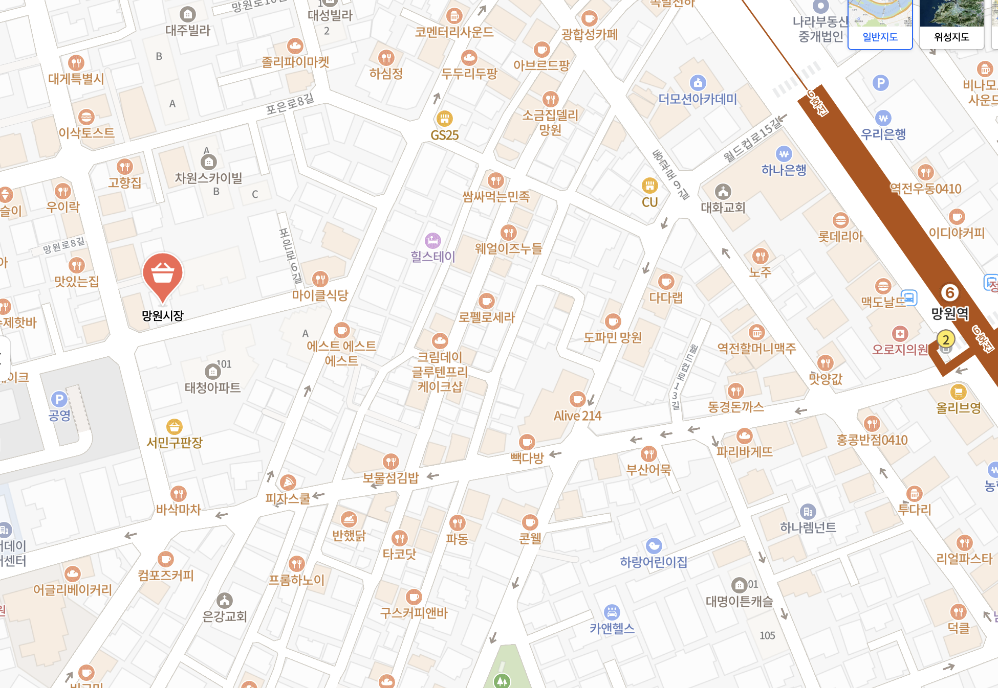 Get down at Mangwon station (line 6) and get out of exit 2