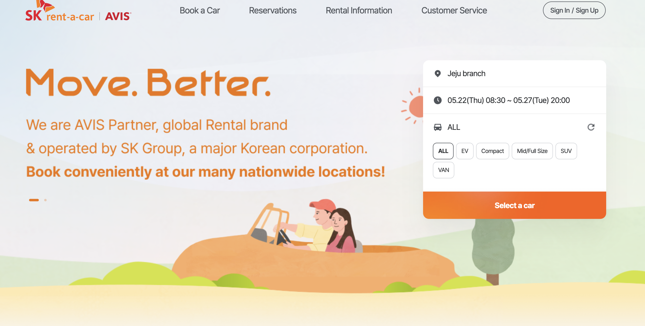 Go to their website (https://homepage-mob.skcarrental.com/en), there is an English option, and make an account!