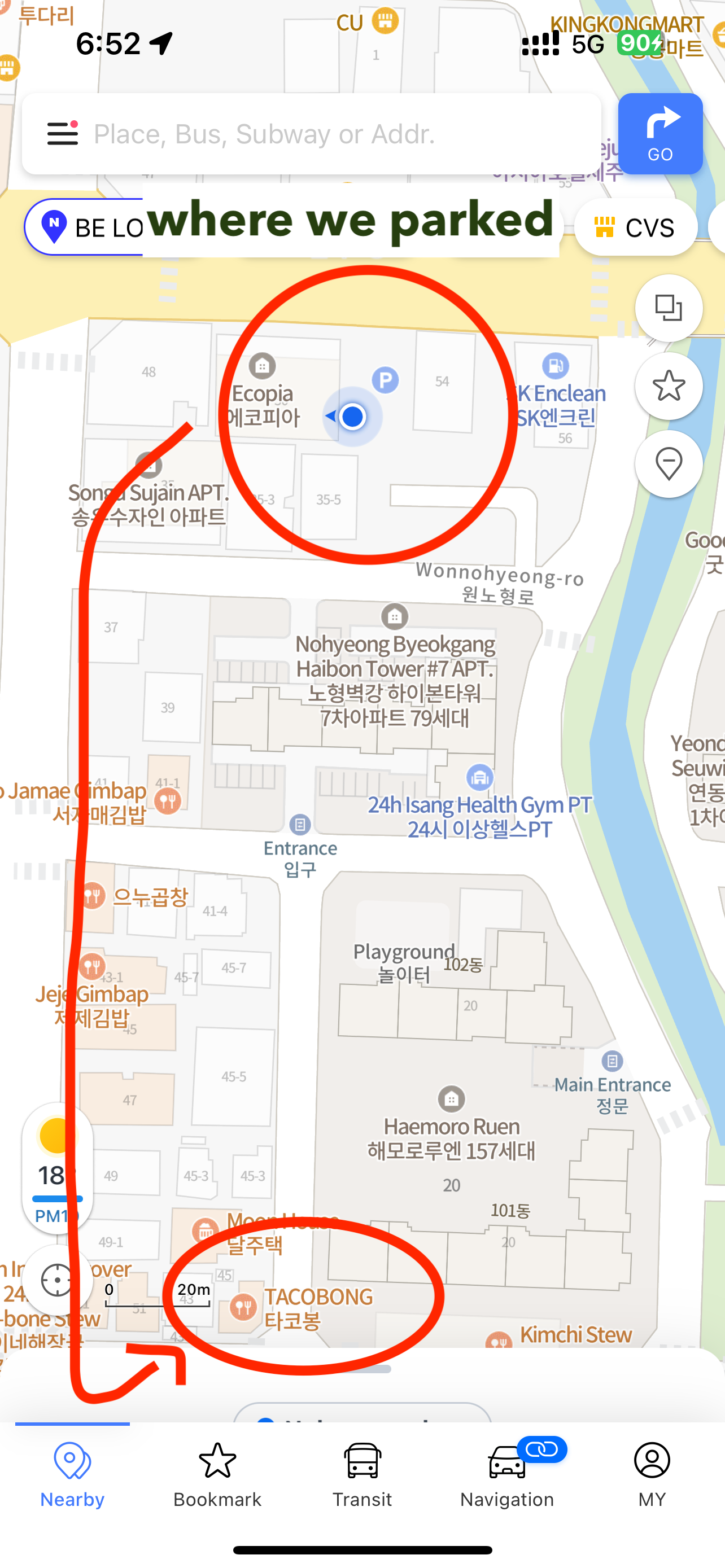 I followed Naver Maps after parking to get to Taco Bong!