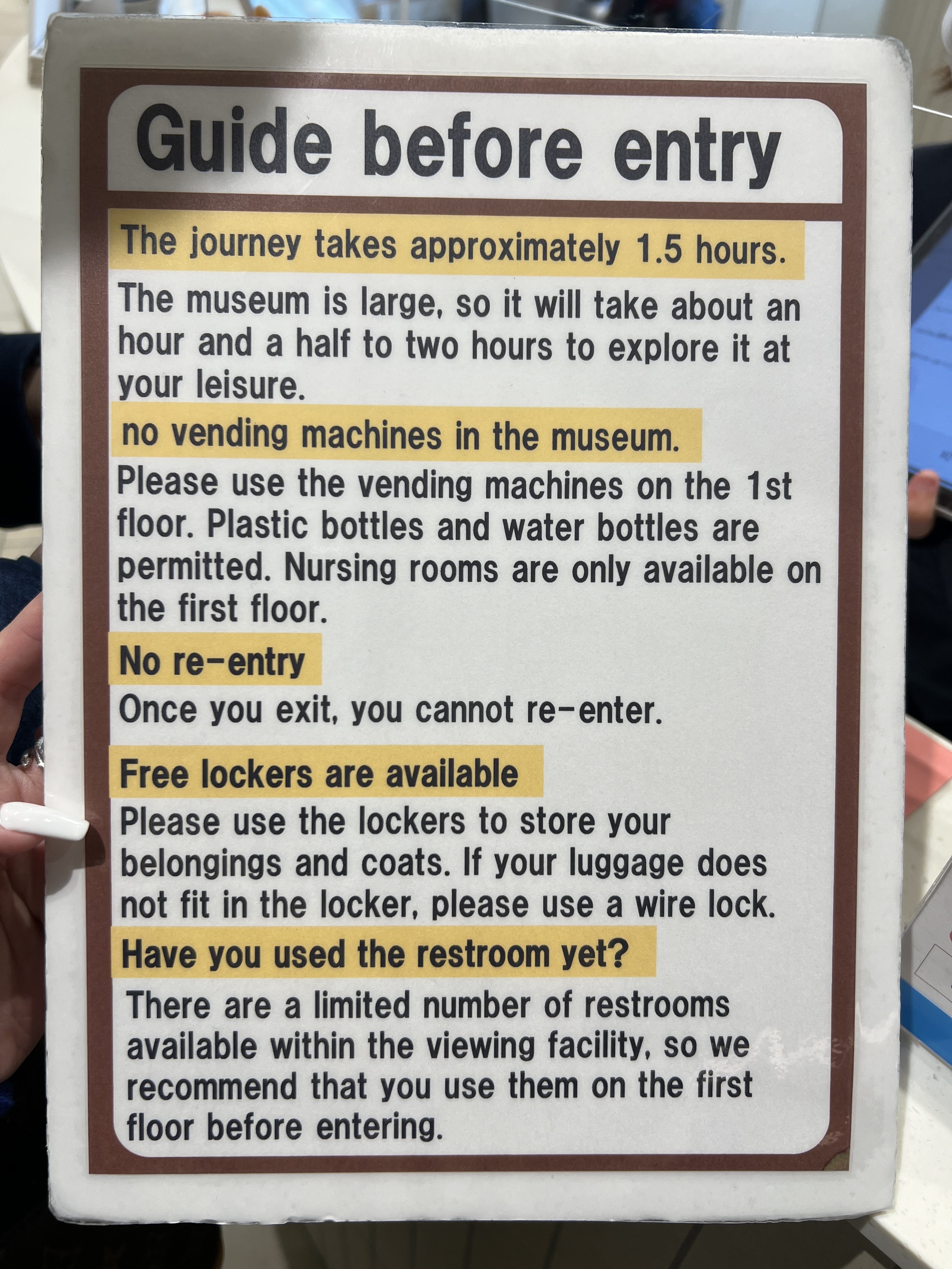 Before we went in, they gave us a guide along with our tickets.