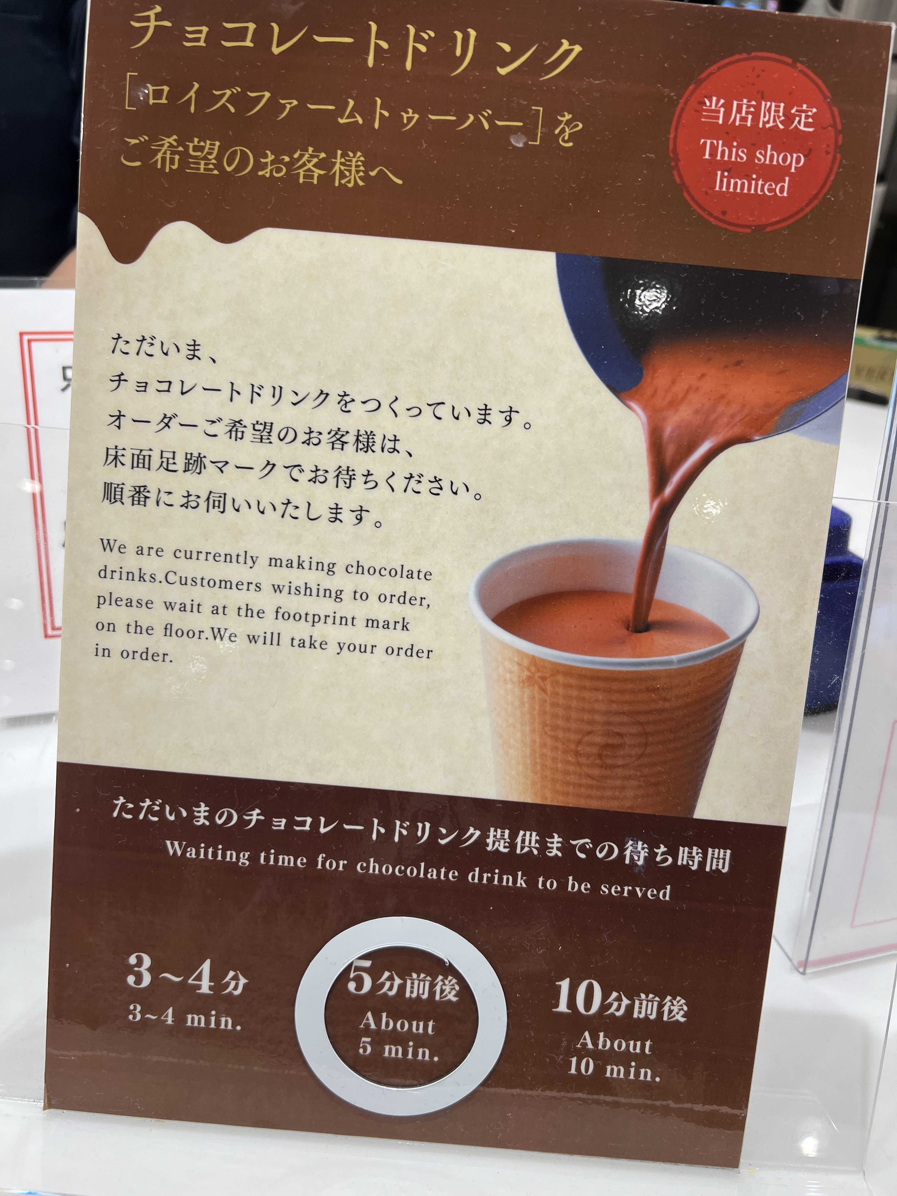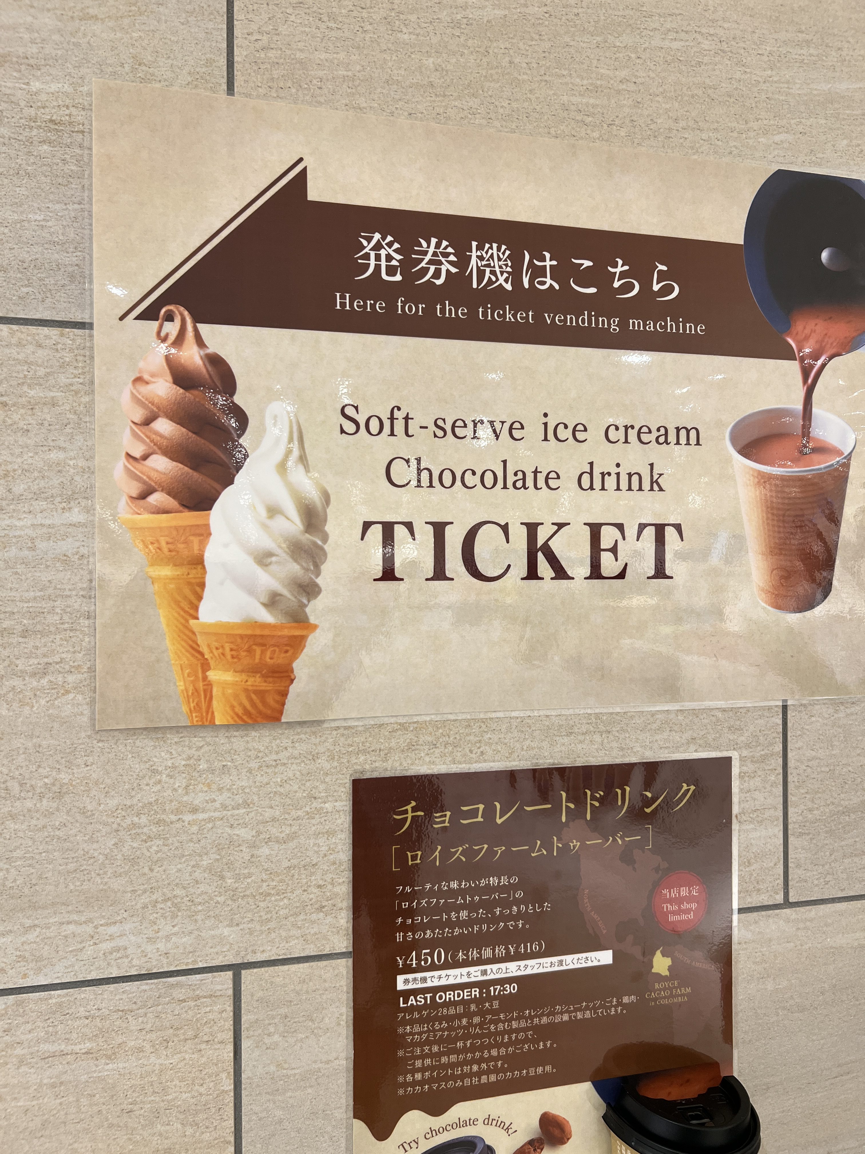 Once you enter, you’ll see some tables and a counter where you can get soft serve ice cream and hot chocolate drinks.