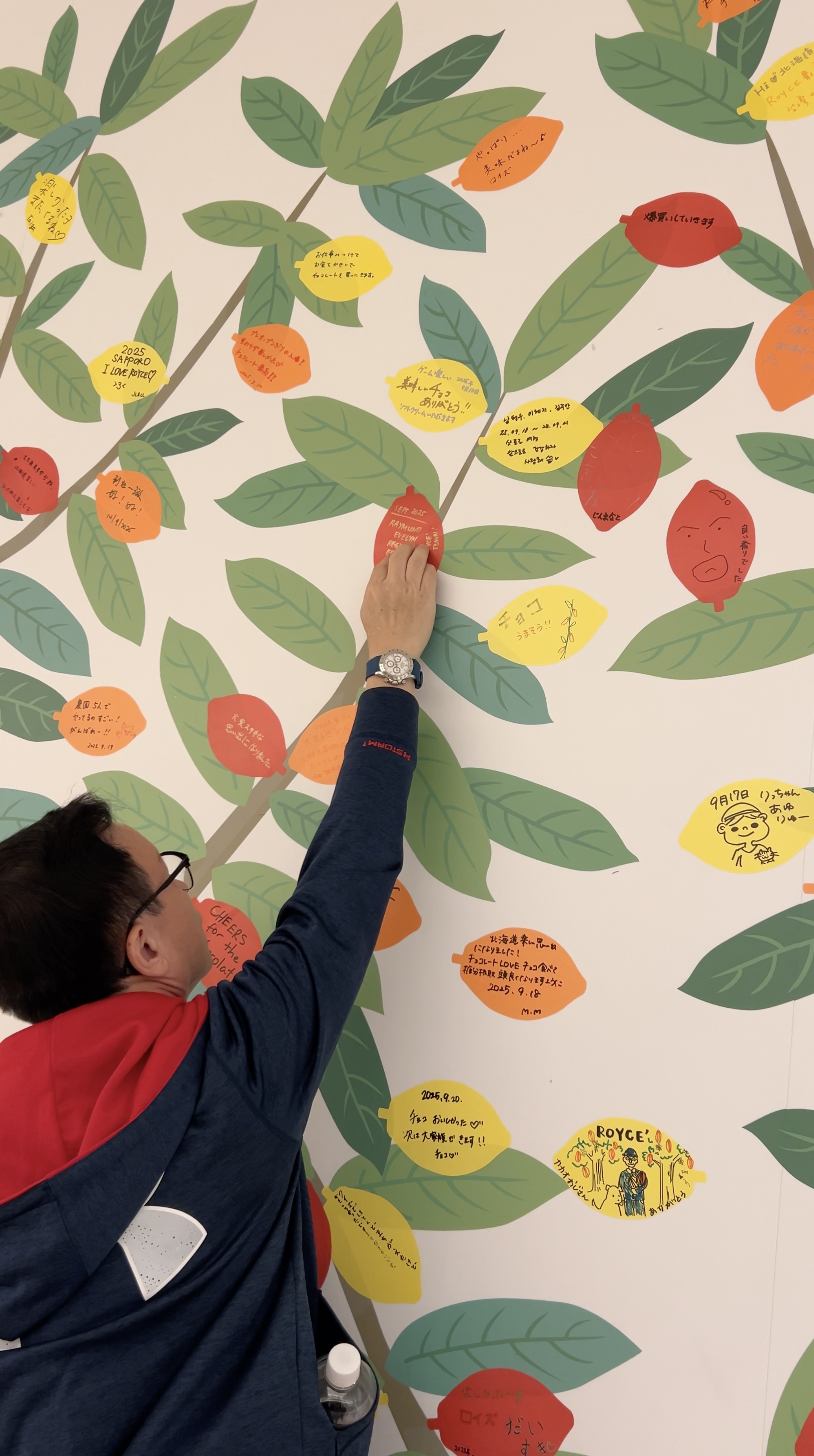 As we headed toward the exit, there were cacao-shaped stickers we could choose from. We got to write whatever we wanted on them and stick them on the wall 🥹.
